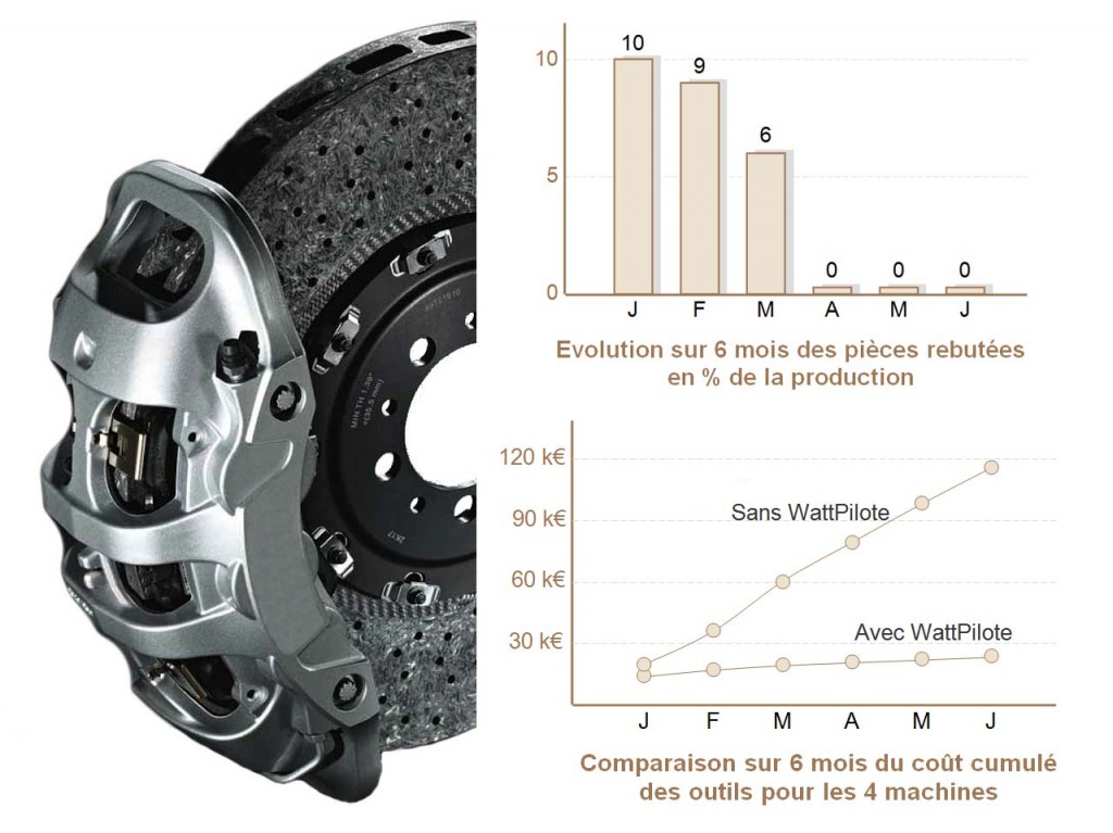 Dés la mise en service, les systèmes WattPilote ont permis de détecter toutes les casses d’outils. Sans grande conséquence sur le coût des outils, cette première étape a cependant assuré la qualité de la production et limité le nombre de rebuts.